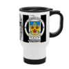 A popular product for drivers and travellers, these well made white coated stainless steel thermo travel mugs are excellent for anyone on the go.